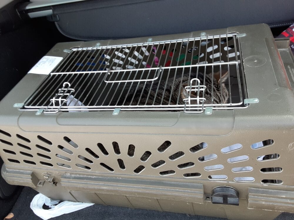 そこにはシャーシャーと激怒中の猫君が病院のケージに入って出てきました・・・どうやら自前(私)のバックに戻せなかったようです・・