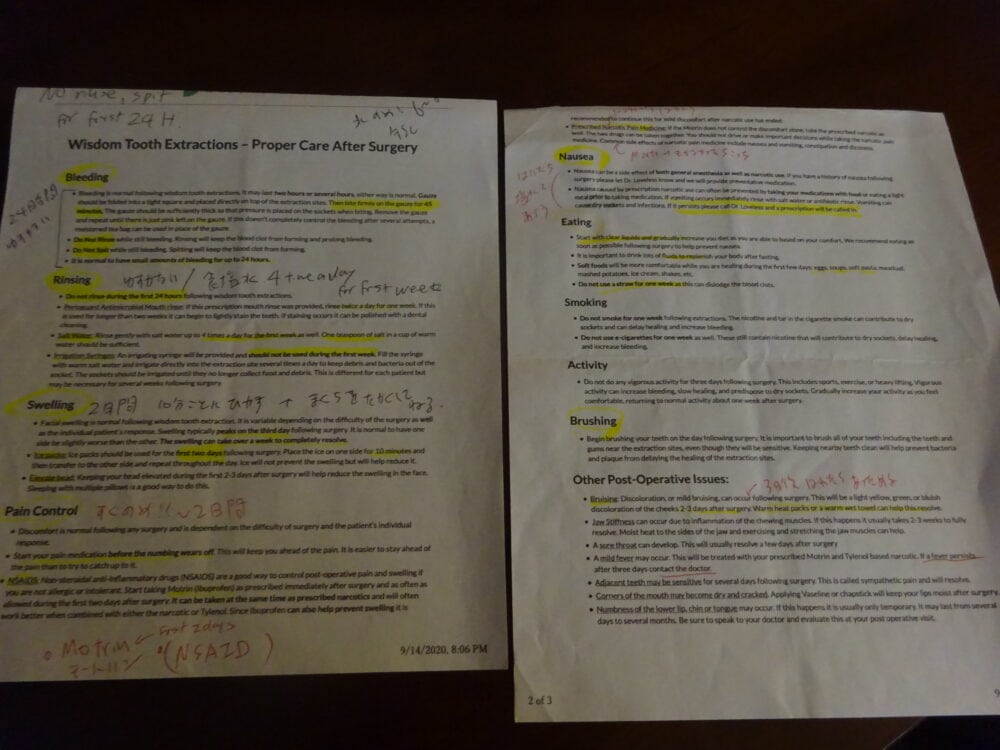 - アメリカの親知らずの抜歯4本をした時の様子や過程に興味がある